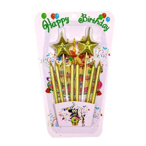 Paket içerisinde 2 adet gold yıldız 6 Adet gold çubuk mum bulunur.